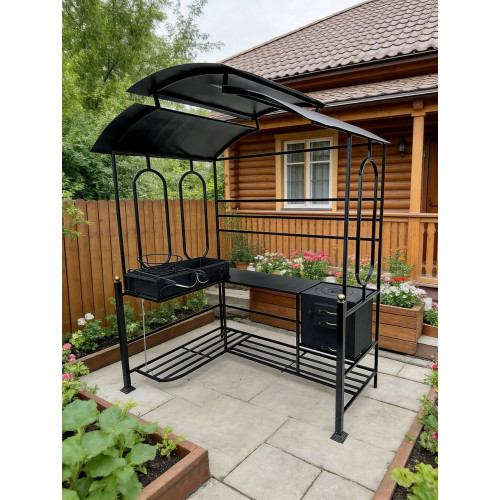 Мангал с крышей и печкой угловой N3 без ковки